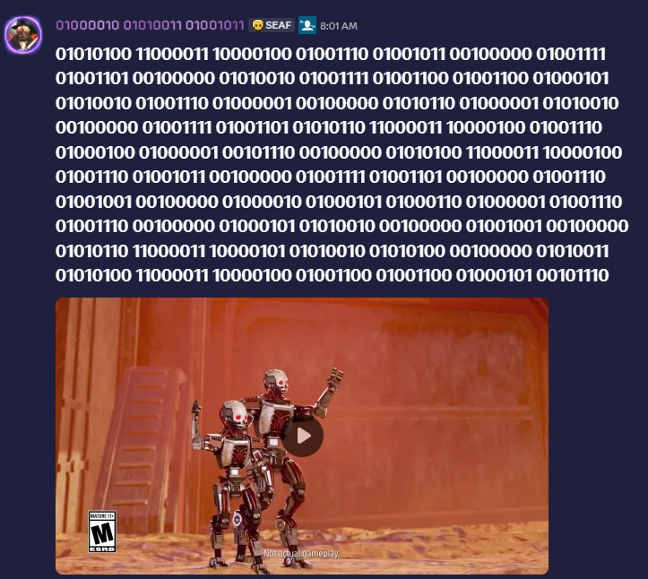 Super Earth’s greatest nemesis has infiltrated the network. In what appears to be a widespread hack orchestrated by the socialist Automatons, the official social media channels and its Discord server of Helldivers 2 have become flooded with cryptic binary messages.